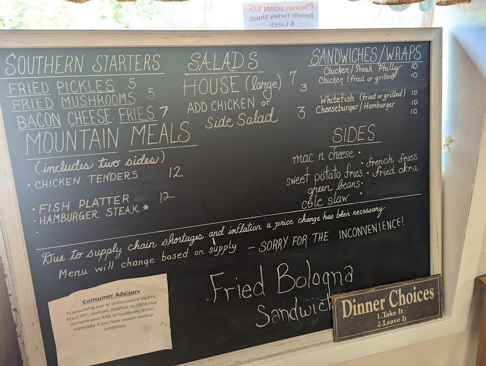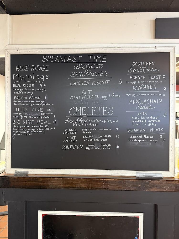 Bonnie and Clyde's menu celebrates Appalachian cuisine with a modern flair. Breakfast items reign supreme, ranging from hearty omelets to sweet pancakes. The Blue Ridge Mornings section shines with local favorites, making mornings memorable.